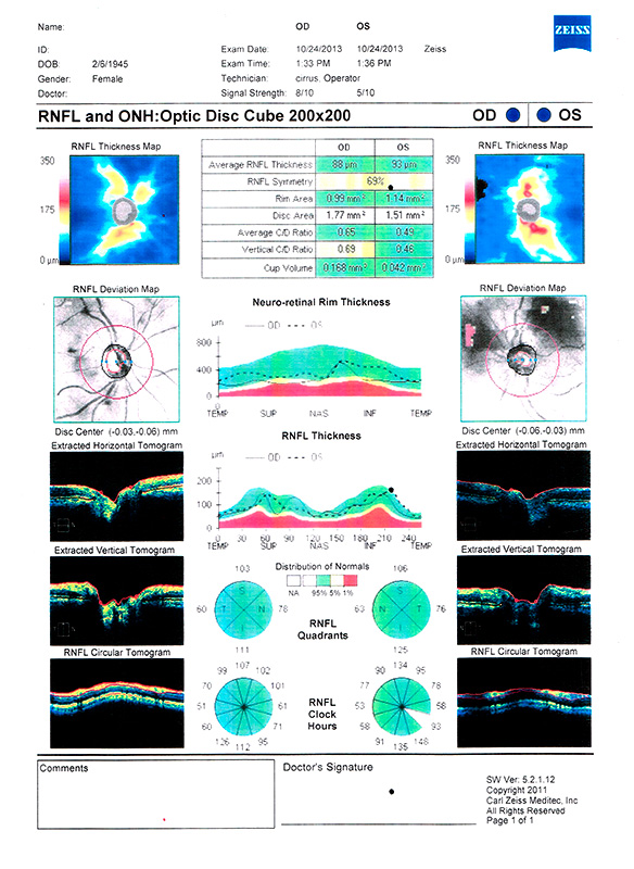 Se trata de un tomógrafo de coherencia óptica de última generación para estudiar la parte más noble de la retina (la mácula), de gran importancia en el diagnóstico de enfermedades como la degeneración macular, membranas epiretinianas, etc… y de gran utilidad en la valoración del nervio óptico en el glaucoma, prueba que se complementa con el campo visual.